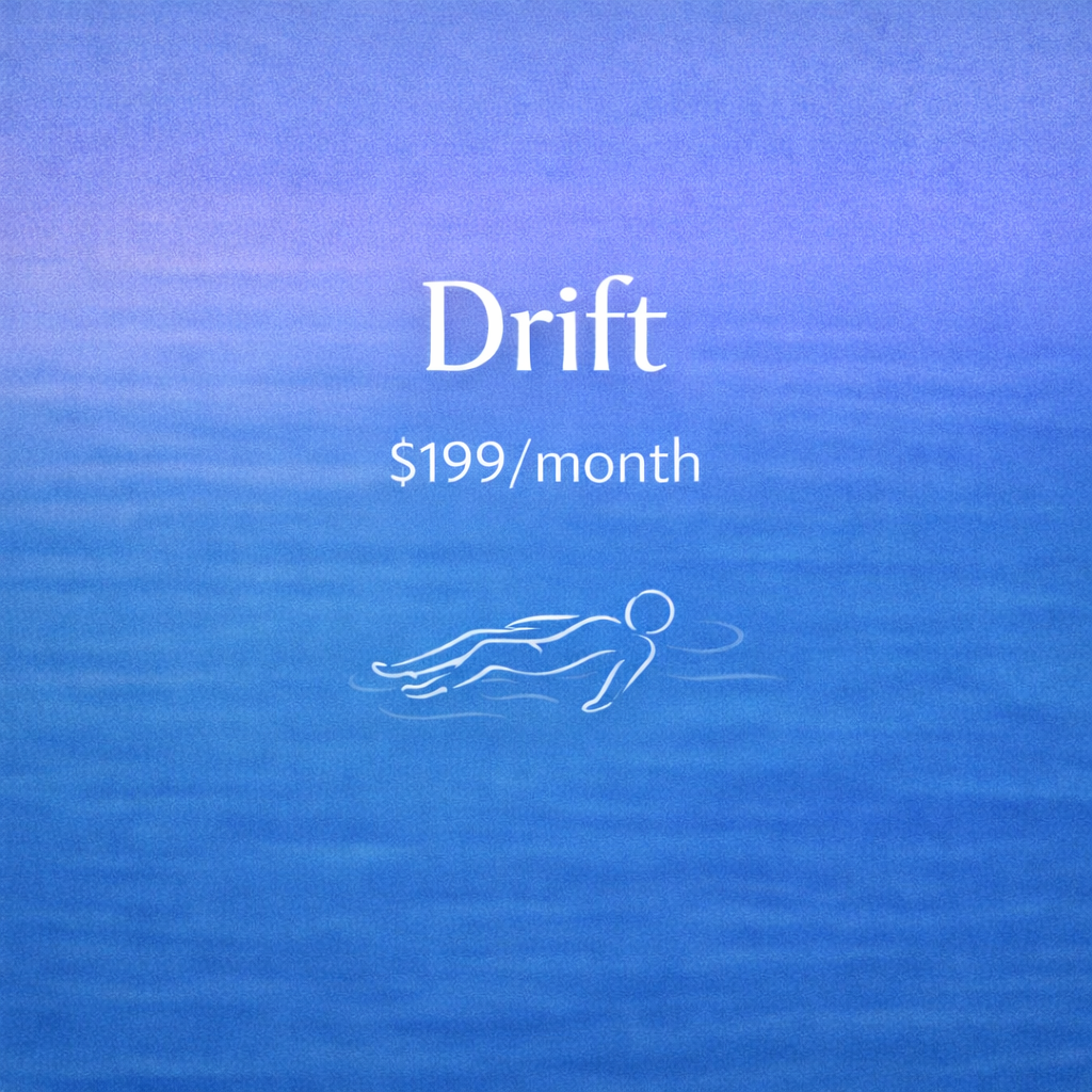 Drift adds a monthly float session to your foundational routine. Floating helps quiet sensory overwhelm, supports deep rest, and allows the body to fully off-load tension while the mind softens. Many people describe it as the one time per month they fully “unplug.”